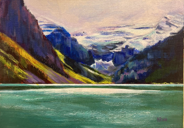 Yvonne Bush is a painter based in Banff whose work investigates the shifting light, weather, and topography of the Canadian Rockies through watercolour and acrylic. She earned her Honours Fine Arts degree from York University in Toronto where she pursued her career in Performing and Visual Arts reflecting her interdisciplinary foundation. Living in Banff provides daily encounters with dramatic light and seasonal change which she translates into intimate landscapes that balance observation with a lyrical sense of place. A recent artist residency in Italy and participation in an international show deepened her resolve to paint and present the natural beauty of her locale to broader audiences. Recently focusing on smaller paintings, she enjoys distilling vast landscapes into moments of stillness and clarity - small windows that evoke wonder, reflection and connection to the spirit of our natural environment.